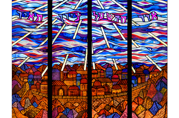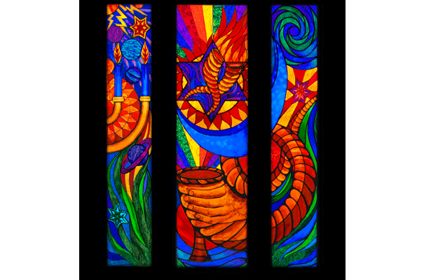 Designed to illuminate the essence of many of Judaism's foremost qualities, this stained glass window touches on the innermost desires of those seeking wholeness and peace.
